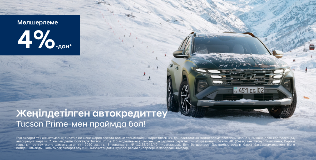 Hyundai TUCSON - 4% мөлшерлеме бойынша арнайы автокредиттеу шарттары.