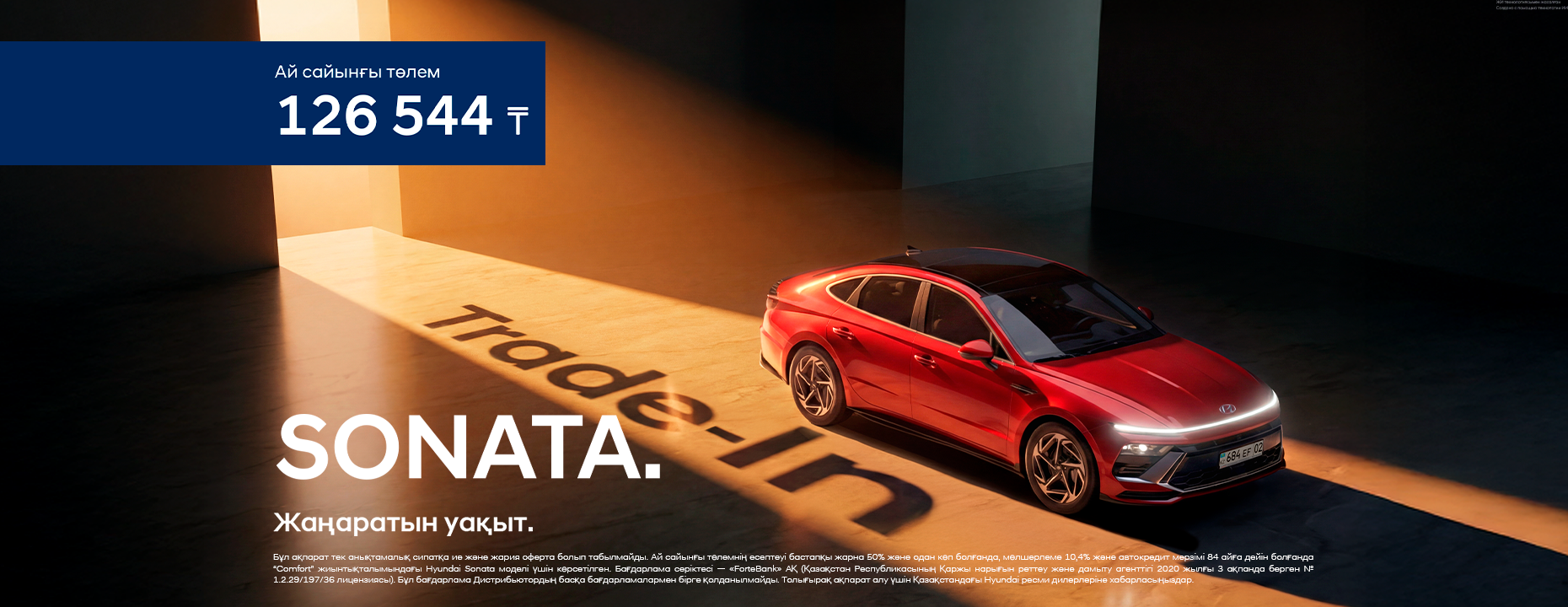 SONATA  Comfort от 10,4% от 50% до 84 месяцев 126 544 ₸ бастап